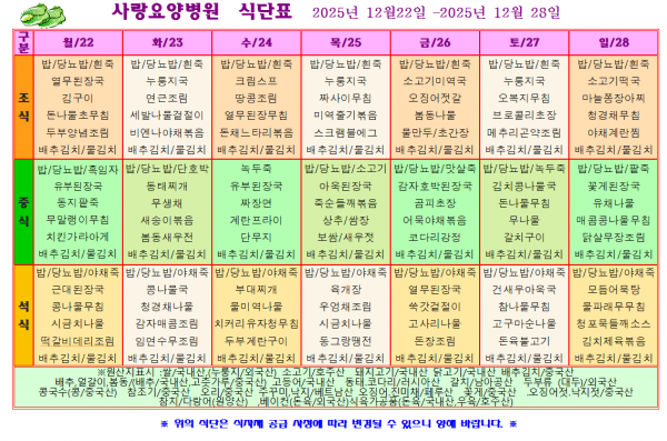 사랑요양병원 12월 셋째주 식단표