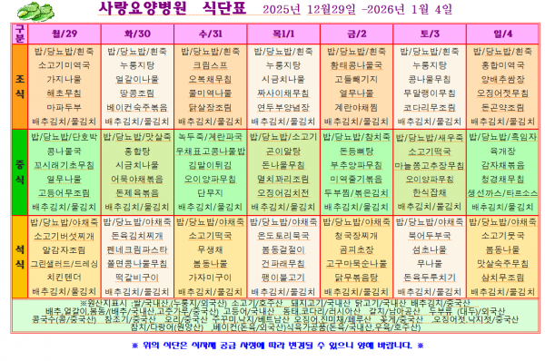 사랑요양병원 12월 넷째주 식단표